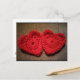 Carte Postale Coeurs de fils crochet sur bois fait main