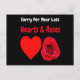 Carte postale Cœurs et Roses Désolé pour votre perte