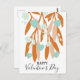 Carte postale de la Saint-Valentin avec une jolie illustration plate et un texte "Heureuse Sainte-Valentin". Branches, fleurs et coeurs illustration. Couleurs pastel orange et bleu.