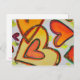 Des coeurs de couleur pêche, rose et orange se croisent comme des nuages qui dérivent dans le ciel. Un contour vert dessine chaque coeur. Des points de couleur jaune pâle ressemblent à des confettis entre les coeurs. La peinture à l'aquarelle est recouverte d'une légère couche d'or et de rose. Personnalisez cette carte postale avec votre texte et vos images personnelles !