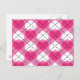 Cette carte postale est dotée d'un motif Jacquard de coeur rose et blanc chaud. Le verso de la carte postale est vide, en attente de texte ou de sentiments manuscrits.