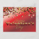 Carte postale personnalisée de la Saint-Valentin avec des coeurs rayés rouge et or sur un arrière - plan brillant rouge dégradé et le texte "Heureuse Sainte-Valentin".