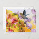 Carte postale avec colibri, lilas violet et orchidées jaunes et roses. Personnalisez avec votre propre texte.