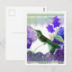 Carte Postale Colibri vert avec fleurs, dentelle, perles