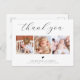 Créez votre propre carte postale de remerciement pour baby shower avec un magnifique collage de photos pour remercier vos amis et votre famille d'avoir accueilli votre petit bout ! Le design élégant et minimaliste présente un collage de trois photos personnalisées et une typographie élégante avec votre message de "merci" dans un script chic et les informations de votre bébé dans une police classique. Il y a aussi un petit cœur mignon. Au dos, il y a un message personnalisable avec vos noms. Rendez-la unique en remplaçant le texte et les images en cliquant sur le bouton "Personnaliser".