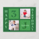 Carte postale de fête d'anniversaire verte et cool à 2 photos pour un petit garçon ou un tout-petit. Célébrez l'anniversaire de votre enfant avec de mignonnes photographies d'eux sur cette carte "ajoutez votre propre photographie" avec des carrés verts amusants. Ajoutez leur nom et leur âge. Personnalisez le dos pour une invitation à une fête ou une carte postale cadeau.