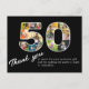 Une façon merveilleuse de dire merci à ceux qui ont assisté à une fête d'anniversaire de 50 ans. Une carte de remerciement noir et blanc au design classique unique. Utilisez notre modèle pour créer votre propre collage de photos personnalisé. Cet accessoire de fête d'anniversaire attentionné pour cette fête merveilleuse a un format simple et élégant avec une belle typographie. Le design se concentre sur vos 14 photos dans le "50". Les photos utilisées sont carrées (style Instagram) avec toutes les images assez centrales. Vous pouvez utiliser des images au format paysage et portrait qui seront automatiquement recadrées. Échangez vos images à différentes positions et amusez-vous à créer votre mise en page. Venez dans notre magasin et parcourez la gamme de cadeaux photo pour 50e anniversaire.
