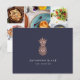 Parfaites pour les photographes, les traiteurs, les chefs, les maquilleurs et les professionnels de la beauté, ces cartes postales chic présentent un faux ananas en feuille d'or rose sur un riche arrière - plan bleu nuit, avec deux lignes de texte personnalisé en blanc pour votre nom et/ou nom d'entreprise ou spécialité. Ajoutez vos coordonnées au verso avec cinq photos pour afficher un portfolio de votre meilleur travail.