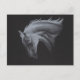 La tête de cheval blanche sort de l'obscurité. Coloration sereine et classique en noir et blanc basique.