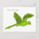 A beautiful olive green australian parrot flying. Verse "where does time go?" Postcard