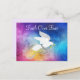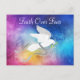 Envoyez à quelqu'un de spécial cette carte postale chrétienne "unique". Elle représente une colombe blanche volant parmi les étoiles et des nuages colorés, portant un rameau d'olivier avec des rubans argentés qui flottent et les mots inspirants... "La foi surmonte la peur" !
