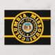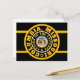 Carte postale noir avec des cercles concentriques noirs, or et blancs au-dessus d'un rectangle violet et or avec "COLUMBIA, MISSOURI CENTRE DE L'UNIVERS" avec Y-NOT-ME. Cette conception est un cri à Columbia, Missouri une ville en mouvement.