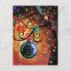 Send a vibrant piece of art this holiday season! This unique Christmas postcard features the beautiful, watercolor-style artwork of a colorful, glowing, swirly tree adorned with large, sparkling ornaments. The bright bokeh lights make the scene truly magical.