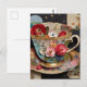 Carte Postale Colorful Teacup Collage Mixed Media Floral