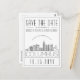 Une carte postale unique pour un mariage qui se déroule dans la belle ville de Columbus Ohio, un mariage qui sauve la date. Cette invitation présente une illustration stylisée de l'horizon unique de la ville avec son nom en dessous. Ceci est suivi par vos informations de jour de mariage dans un style ouvert assorti. Au verso du billet se trouve votre adresse. Tous les éléments individuels de la carte invitation sont déverrouillés, alors n'hésitez pas à modifier tous les détails nécessaires tels que les tailles de police, les styles et plus en utilisant la fonction de personnalisation. Vous pouvez ajouter une photo à l'envers et lui ajouter un style de filtre noir et blanc.