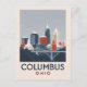 A sleek, vintage-style travel poster showcasing the recognizable downtown skyline of Columbus, Ohio. The design features iconic buildings and a bridge over the Scioto River in a striking color palette of blue, grey, and red. Perfect for Ohio residents, city lovers, and collectors of retro metropolitan art.