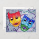 Les masques de théâtre comique et tragique, dessinés et dessinés à la main par Sandra Gale. Ce dessin original est coloré et fantaisiste et s'apparente à merveille à n'importe quel produit. Peut être offert comme cadeau à l'acteur que vous connaissez, ou comme une belle décoration colorée. Des visages heureux et triste aux couleurs coordonnées représentent le théâtre et l'action. Parfait pour tous les objets et convient à tous les âges.
