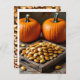 Voici une carte postale mignonne pour les fêtes alimentaires que vous pouvez envoyer à un ami ou un membre de la famille à l'automne avec une recette sur la façon de faire cuire des graines citrouilles,