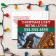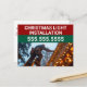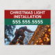 Customisez vos propres cartes postales commerciales d'installation de lumière de Noël en inscrivant votre nom d'entreprise ou votre message en rouge et vert avec votre numéro de téléphone au-dessus de la photo d'une personne sur une échelle mettant des lumières de vacances en hiver.