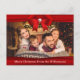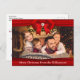Un design moderne de carte de Noël avec votre photo de famille remplissant le visage de la carte. Des rubans rouges de Noël encadrent votre photo et vos mots ci-dessous. Vous pouvez personnaliser l'accueil de Noël à l'arrière, votre adresse de retour et vos noms en script près du bas avec de l'espace pour ajouter une note personnelle manuscrite.