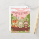 Rendez l'anniversaire de votre enfant spécial avec notre conception ludique et mignonne sur le thème de la forêt, mettant en vedette un renard, un lapin et un hibou qui célèbrent une fête en plein bois. Parfait pour les enfants qui aiment la nature et les animaux !