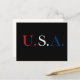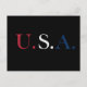 Carte postale imprimée avec les U.S.A. Red White And Blue Lettering Illustration de design par TheFabricSeal imprimé sur demande shop à l'adresse Zazzle.com #ZazzleMade https://www.zazzle.com/store/thefabricseal Tous les drapeaux des pays du monde entier sont si beaux, y compris le drapeau inspiré pour ce design des Etats-Unis d'Amérique avec belle rouge, blanc et bleu sur une audacieuse couleur arrière - plan noir ébène. Notre boutique présente également les collections de produits de la marque américaine Stars and Stripes avec une couleur arrière - plan noire et blanche. Regarde-les.