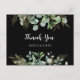 Carte de remerciement Conception moderne de feuille d'or eucalyptus botanique. Cette conception de verdure moderne et de haute qualité est facile à personnaliser pour correspondre à vos informations de mariage. Utilisez notre outil de conception pour modifier ce modèle. Si vous avez besoin d'aide ou d'articles correspondants, n'hésitez pas à me contacter, je serai ravi de vous aider.