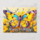 Cette carte d'anniversaire charmante présente une illustration fantaisiste d'un papillon en vol. Vous êtes invité à ajouter votre message au verso de cette carte.