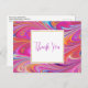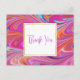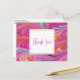 Carte de remerciement avec une conception psychédélique trippy cool. Rose, orange et touches de bleu tourbillonnent autour. Ambiance rétro hippie.