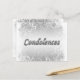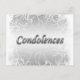 Cette carte de condolence a de beaux tourbillons floraux argentés dressés contre un arrière - plan blanc et le mot "condolences" placé au milieu dans une police en relief audacieuse. RETOUR : Le même design est porté à l'arrière et les mots suivants sont écrits : "Mai; Amis vous réconfortent; Foi vous soutient Les souvenirs d'amour guérissent votre coeur. Avec compassion", et en dessous du verset est un texte modèle pour votre nom ou celui de votre famille. PERSONNALISER IT : Tout le texte peut être modifié selon vos préférences et le style, la couleur et la taille de la police modifiée. La COULEUR ARRIÈRE - PLAN, des deux côtés, peut être changée en n'importe quelle couleur de votre choix. UTILISEZ-LA POUR : Envoyez vos condoléances à des amis, à des membres de votre famille et à des collègues de travail qui ont subi la perte d'un être cher. Que ce soit pour des funérailles, en mémoire, de la sympathie, du deuil, du mémorial, du souvenir ou de la fête des anciens combattants. DROIT D'AUTEUR : © Robin Wood - hommes-cadeaux