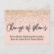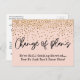 Ce design décontracté est peut-être ce que vous recherchez si vous voulez une carte unique pour avertir vos proches que votre mariage a été retardé. Dans une police d'écriture manuscrite amusante, j'ai créé un graphique qui indique "Changement de plans". En dessous, il y a un message que vous pouvez personnaliser à votre guise. Mon brouillon indique "Nous nous marions toujours... Maintenant, nous ne savons juste pas quand !". L'arrière-plan peut être changé en n'importe quelle couleur de votre choix ! Dessus, un faux confetti de couleur dorée festive semble tomber d'en haut. Utilisez les champs du modèle pour ajouter vos propres détails et le message de votre choix. // 129 //
