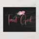 Trust God Christian Postcards Rose or faux parties scintillant typographie calligraphie dit, "Trust Dieu" avec longue tige rose rose. Christian Citations Shop VIkkelynn Designs & Co.