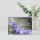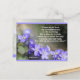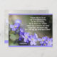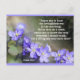 Jolies fleurs mauves avec des mots du Psaume 130:5 "Fais-moi entendre dès le matin ta bonté! Car je me confie en toi. Fais-moi connaître le chemin que je dois suivre! Car j'élève vers toi mon âme." L'image identique légèrement visible au verso de la carte est facilement enlevable si vous le préférez.