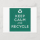 Keep Calm and Recycle est une parodie de la guerre post Keep Calm and Carry On. Arrière - plan vert avec aspect patiné. Recycle Symbole et texte blanc. Merveilleux cadeaux de l'environnement pour les recycleurs et le Jour des terres!