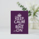 Ceci dit Keep Calm and Bike On, dans le style de l'affiche classique garder calme. Pour s'amuser il y a des petits vélos assis sur les lettres. C'est une belle conception amusante, idéale pour n'importe quel événement cycliste, et des cadeaux pour quiconque aime faire du vélo. Vous pouvez changer la couleur de l'arrière - plan très facilement, il suffit d'appuyer sur la personnaliser. Si vous désirez d'autres changements - ou pour voir la conception d'un autre produit - ou si vous avez des questions, s'il vous plaît contactez-moi par mon magasin et je vous aiderai de toutes les façons possibles. Merci beaucoup d'avoir cherché.