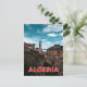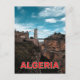 Un pont suspendu enjambe une gorge profonde, reliant des falaises rocheuses sous un ciel partiellement nuageux. Le mot "ALGÉRIE" est affiché en haut de la page en lettres rouges en gras.