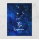 Constellation du zodiaque Capricorne Galaxie Design avec une police de caractères script brossé tendance, texture de fond aquarelle céleste bleu foncé, constellation d'étoiles brillantes et symbole de la chèvre de mer. Signe astrologique moderne Horoscope de naissance, est parfait pour tout anniversaire de Capricorne du 22 décembre au 19 janvier ! Fait un excellent cadeau pour n'importe quelle fille ou garçon, les membres de la famille, les adolescents, la femme, le mari, les amis et les amateurs d'astrologie. Carte postale cosmique de l'espace nuit !