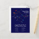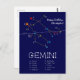 Constellation du zodiaque Gémeaux ou jumeaux. La couleur des étoiles est à peu près réelle. Noms des étoiles et des objets spatiaux. Gémeaux est l'une des constellations du zodiaque, le soleil la traverse le long de la ligne de l'écliptique entre le 21 mai et le 20 juin environ. Dans la mythologie grecque classique, les jumeaux - Castor et Pollux - partageaient la même mère, Léda, mais avaient des pères différents. Le père de Pollux était le dieu Zeus, ce qui rendait Pollux immortel tandis que Castor était mortel. Leur sœur était Hélène de Troie, ils ont donc combattu dans la guerre de Troie. Lorsque le mortel Castor fut tué, Pollux demanda à Zeus de lui permettre de partager sa propre immortalité avec son jumeau pour les garder ensemble, et ils furent transformés en constellation Gémeaux. Carte de vœux d'anniversaire unique, élégante et personnalisable pour qui que ce soit. Vous pouvez modifier l'image et le texte du modèle "Joyeux anniversaire, Christopher !". Vous pouvez transférer ce design sur une variété d'autres produits. N'oubliez pas d'utiliser le bouton "Personnaliser" ou "Modifier le design", ou le lien bleu "Détails" --> "Cliquez pour personnaliser davantage" --> "REMPLIR/ AJUSTER"