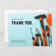 Une carte postale de remerciement sur le thème de l'ensemble d'outils de correspondance minimal, avec un design photo plat simple. Elle comporte un ensemble d'outils de correspondance au premier plan avec un simple merci sur le côté. À l'intérieur, il y a un espace supplémentaire pour votre message de remerciement personnalisé à votre équipe de construction et d'ingénierie ou à vos clients. Ou même un simple message de remerciement à votre homme à tout faire pour un travail bien fait.