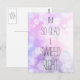 Nouvelle carte Lane - Carte postale amusante, avec citation d'amour 'Je suis si heureux d'avoir glissé vers la droite', en typographie moderne, sur un fond bokeh scintillant violet et bleu.