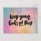 Design de typographie moderne avec des mots en script de calligraphie noire, "Continue Going. Dieu a ceci !" sur un arrière - plan coloré d'aquarelle.