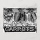 Élégante et complexe gravure vintage du 19ème siècle de 4 variétés de carottes différentes, avec les différents types de carottes suspendues dans des bouquets de crochets sur un mur surmonté. Les noms des variétés sont listés sous chaque groupe : Forçage français, Oxheart, Scarlet Horn, Chantenay. Nettoyé pour décorer n'importe quel objet de façon élégante et moderne. Ajoutez votre propre texte à cette jolie photo végétale si vous voulez ou simplement profiter de l'art victorien noir et blanc détaillé.