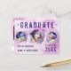 Cool, style moderne grunge, 3 cartes postales de faire-part de graduation photo dans les tons rose et violet. Ce design unique et personnalisé présente vos photos personnelles, nom, année de diplôme et nom de lycée, collège ou université peint sur un mur de style en détresse.