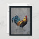 Une peinture colorée d'un coq bantam sur un fond de granit gris. Ce coq a des motifs de plumage exotiques et colorés. Un peigne rouge vif et une belle queue faite de plumes bleues.