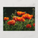 Carte postale avec photo de fleurs de pavot orange ensoleillées sur fond sombre