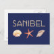 Sanibel Island, Florida seashells design avec l'aquarelle étoile de mer et coquillages et le nom Sanibel dans une police déco. L'arrière - plan bleu peut être changé en une autre couleur si vous le souhaitez.