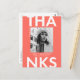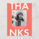 Une remise de diplômes moderne et branchée, merci carte postale avec la photo du diplômé avec "Merci" en lettres blanches en gras et arrière - plan de corail. Personnalisez le devant de la photo remise des diplômes merci carte postale en ajoutant le nom du diplômé, le nom de l'école et l'année de remise des diplômes. L'arrière du carte de remerciements photo de graduation comporte votre adresse de retour avec de l'espace pour votre message dactylographié ou manuscrit.