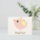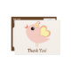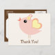 Corail mignon, simple, Pêche, Inséparable jaune avec coeur et fleur Merci note. Peut être utilisé pour des cartes de remerciement Baby shower, des remerciements pour l'anniversaire d'enfant ou d'autres occasions de douche / fête.