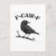 C'est une illustration monochrome réalisée de manière professionnelle, représentant un corbeau perché sur une branche d'arbre, rendue avec une texture de demi-teintes distincte pour évoquer une esthétique vintage. Placé bien en évidence au-dessus de l'oiseau, le texte gras et stylisé "F-CAW-F" offre une touche d'humour qui complète l'atmosphère gothique et potentiellement effrayante ou sur le thème d'Halloween du corbeau. La composition globale mélange des éléments de style de tatouage sombre et vintage avec un design graphique rétro.