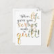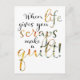 Une belle carte postale patchwork de salutations. Quand la vie vous donne des restes, faites une courtepointe. Ce magnifique design de typographie ferait une carte postale d'encouragement à la "pensée de vous" pour un couchet ou un égout - ou d'utiliser comme une carte d'anniversaire spéciale.